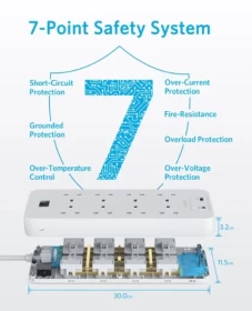 Anker 322 USB Power Strip 4 in 1, 1.8m Cable, A9142K21– White
