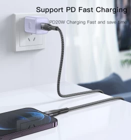 Yesido 20W Aluminum Alloy Nylon Braided Cable | Type C To Lightning Fast Charge Data Cable