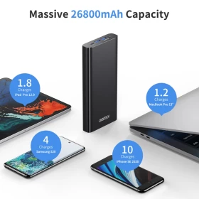 • High-Capacity Power: Equipped with a 26,800mAh battery, it provides extended runtime for multiple devices, ideal for powering laptops and mobile devices.