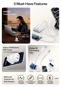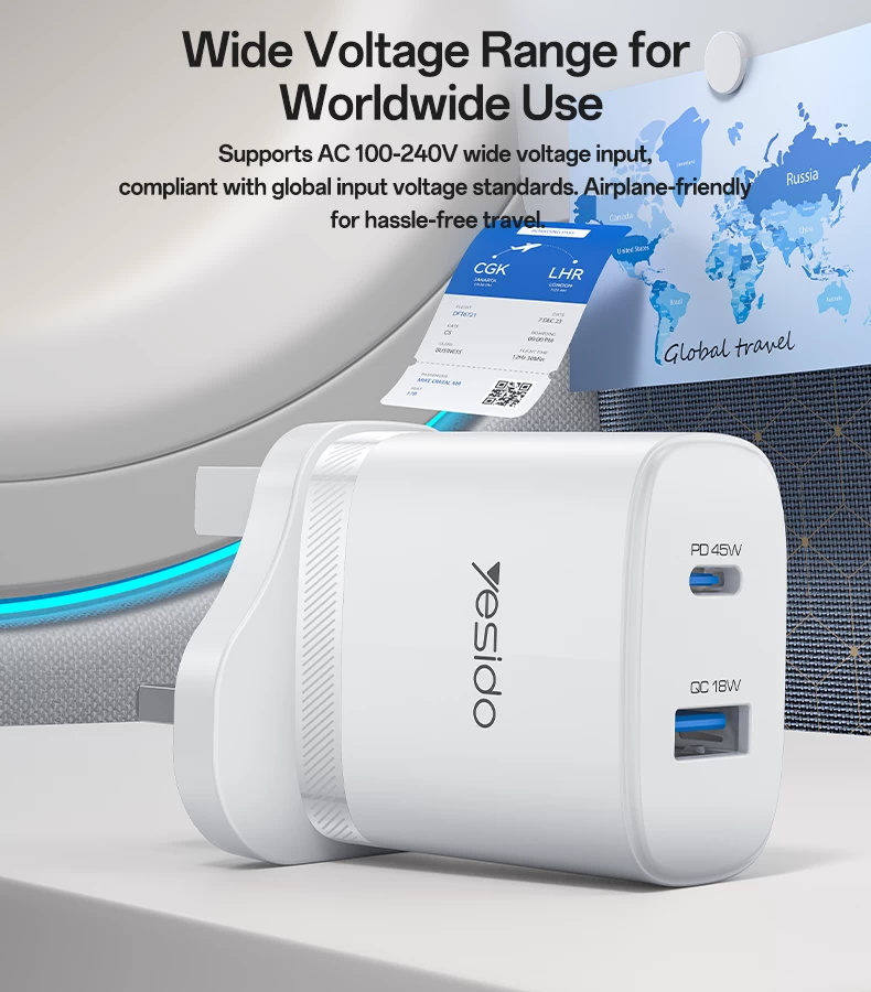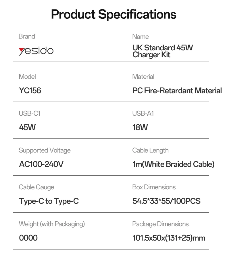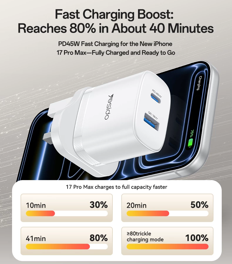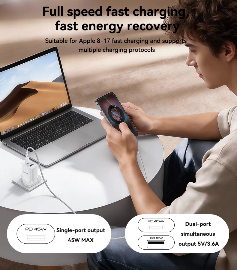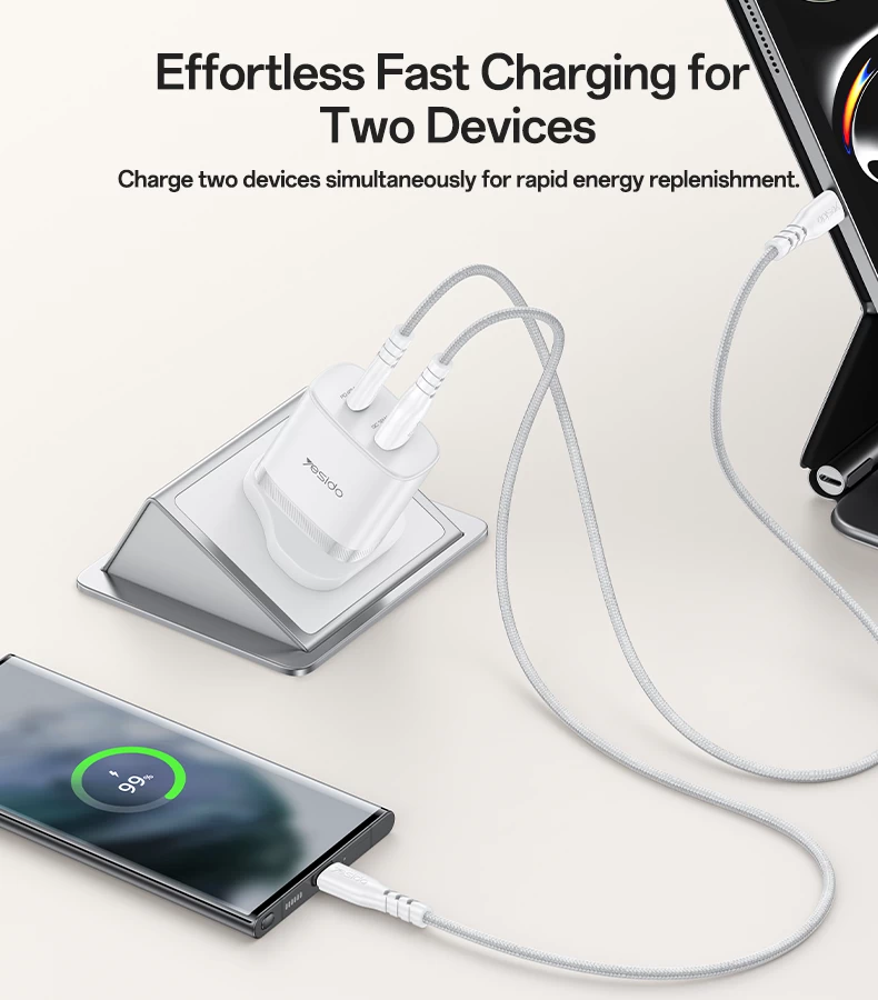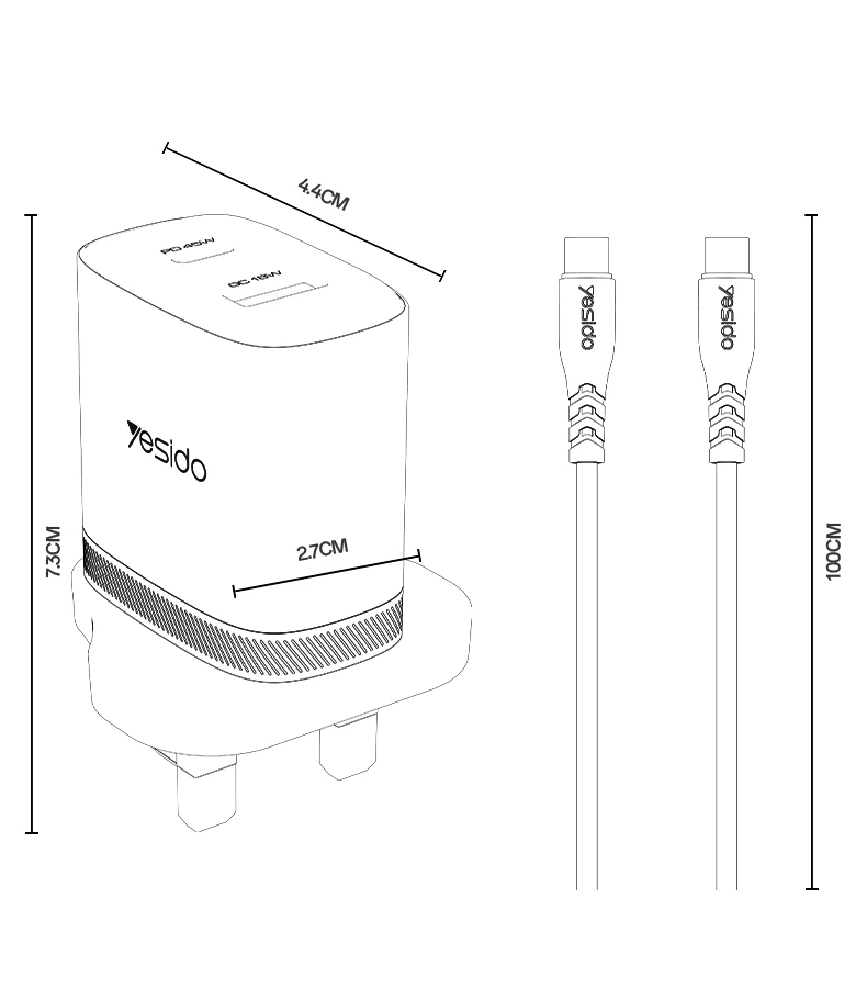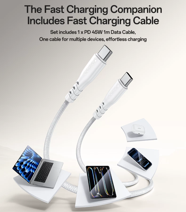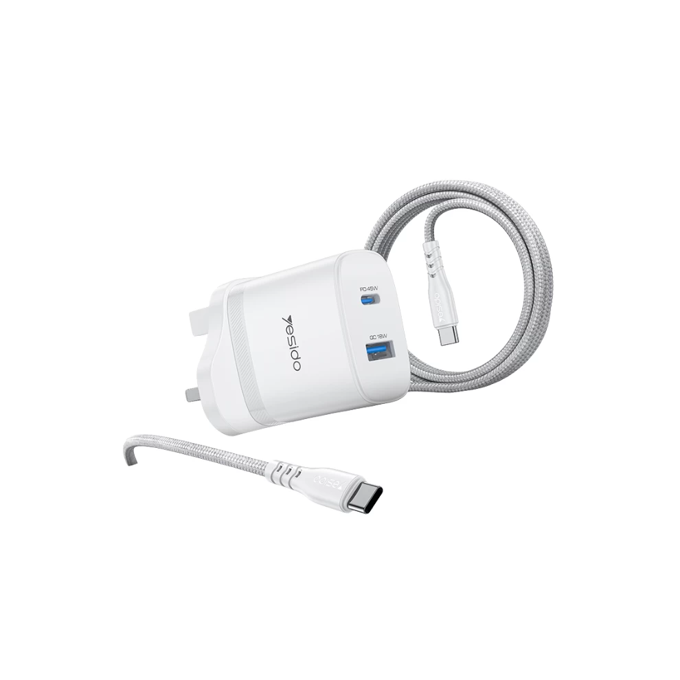 YESIDO QUICK GaN CHARGER YC156 45W + FAST CHARGING DATA CABLE