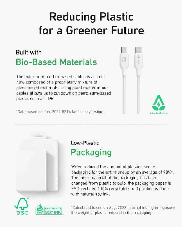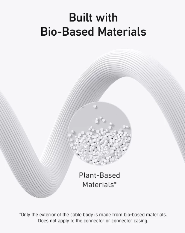 • The exterior of bio-based cables is around 40% composed of a proprietary mixture of plant-based materials.