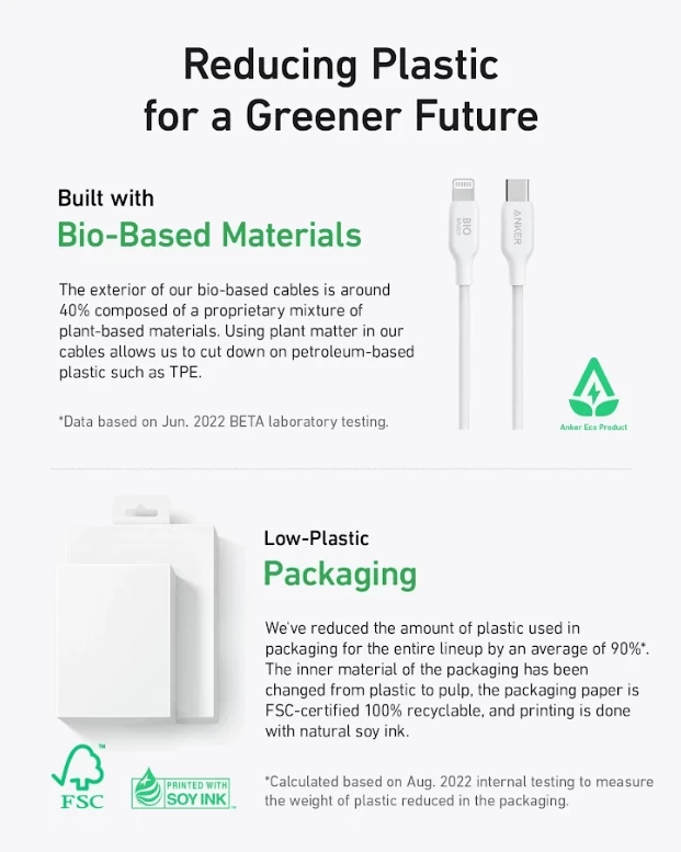 • The exterior of bio-based cables is around 40% composed of a proprietary mixture of plant-based materials.