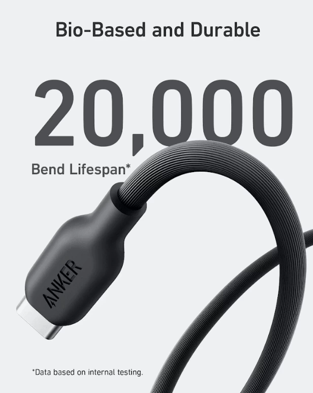 • Bio-Based and Durable: With a 20,000-bend lifespan, this cable is more than ready to handle the stresses and strains of daily use.