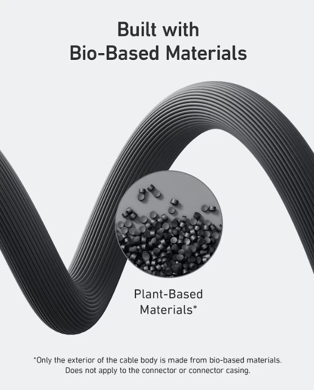 • Eco-Friendly Design: The exterior of the cable body is built using bio-based materials from plants like corn and sugar cane.